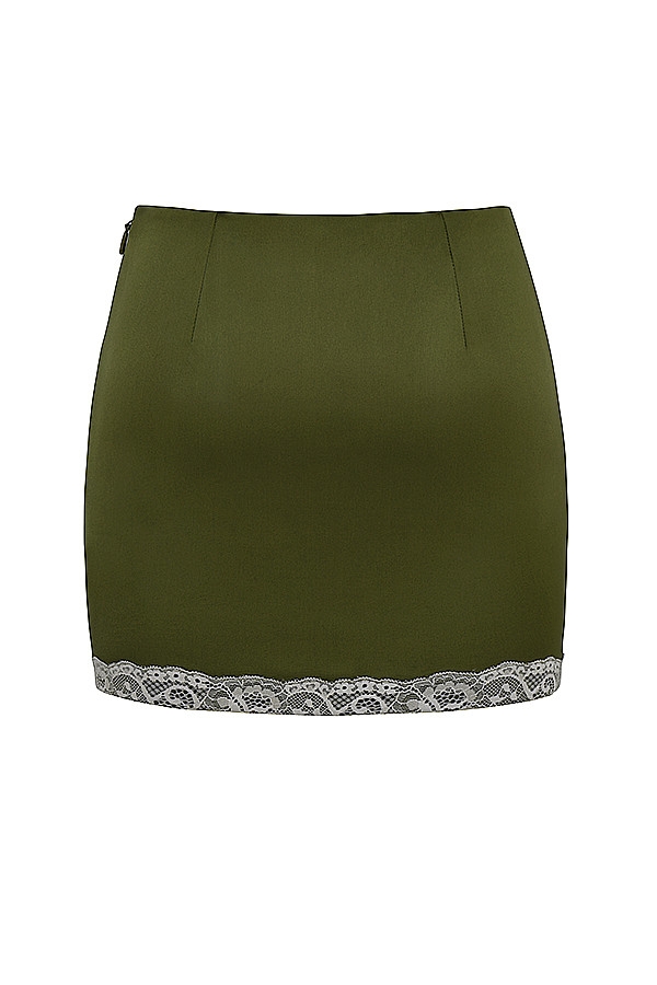 Cut from our soft silky satin and trimmed with delicate lace, our avocado mini skirt is the prettiest skirt you'll wear this season. It sits mid-rise at the waist in a sexy thigh grazing cut and has a close fit at the hips before falling to a slight a-line silhouette. It is fully lined for a smooth finish and has a zip to the left side for easy on. Wear yours with our