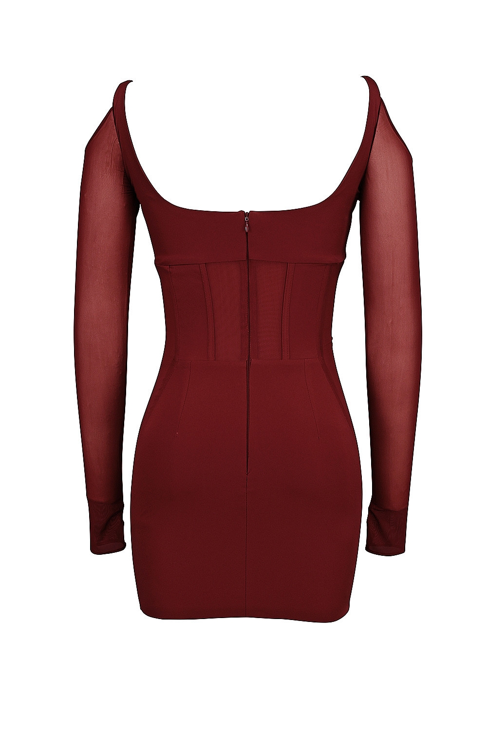 This feature corset dress is the perfect party dress. Cut from stretch mesh, it has underwired cups and the vintage inspired bodice is supported by internal boning to cinch and shape your waist. We love the long sheer sleeves and how the lace up detailing makes it ultra feminine.