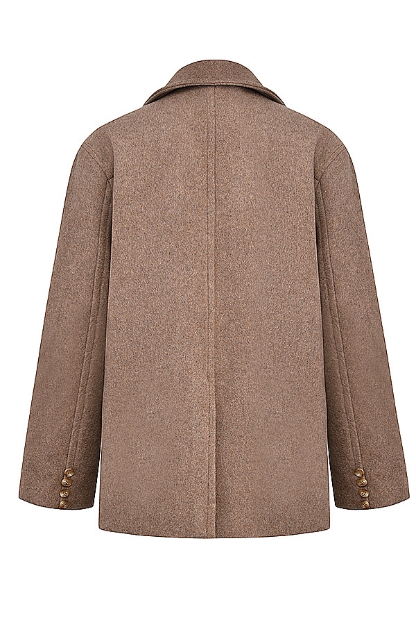 Our double breasted jacket is expertly tailored from a gorgeous wool blend in a neutral sandstone hue that makes it feel classic and cool. The relaxed, oversized fit makes it the perfect layering essential for the colder months and it has peak lapels, side pockets and a doubled breasted front.