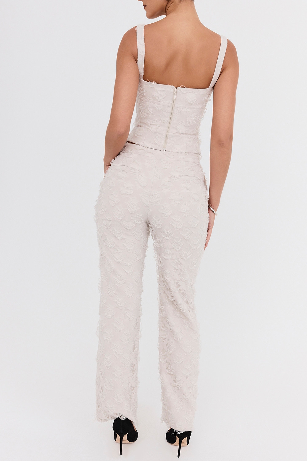 Our pretty taupe trousers are cut from a textured floral fabric that's artfully designed for the most chic look. They sit mid-rise at the waist and have straight legs with pockets and a concealed front fastening. Wear yours with the equally as pretty